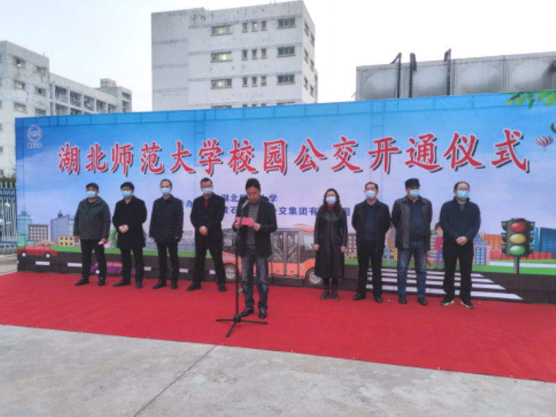 2月28日上午,湖北师范大学校园公交开通仪式在湖师东二门广场举行,六辆金旅星辰正式投入校园运营。黄石市城市公交集团有限公司党委书记、董事长崔向云,湖北师范大学党委常委、副校长余涛等领导及师生代表参加仪式。